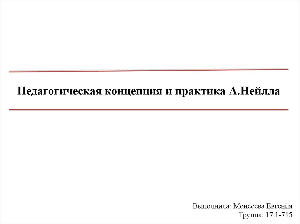 Педагогическая концепция и практика А.НейллаВыполнила: Моисеева Евгения