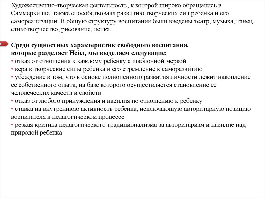 Концепция свободного воспитания А. Нейла содержит ряд особенныххарактеристик:
