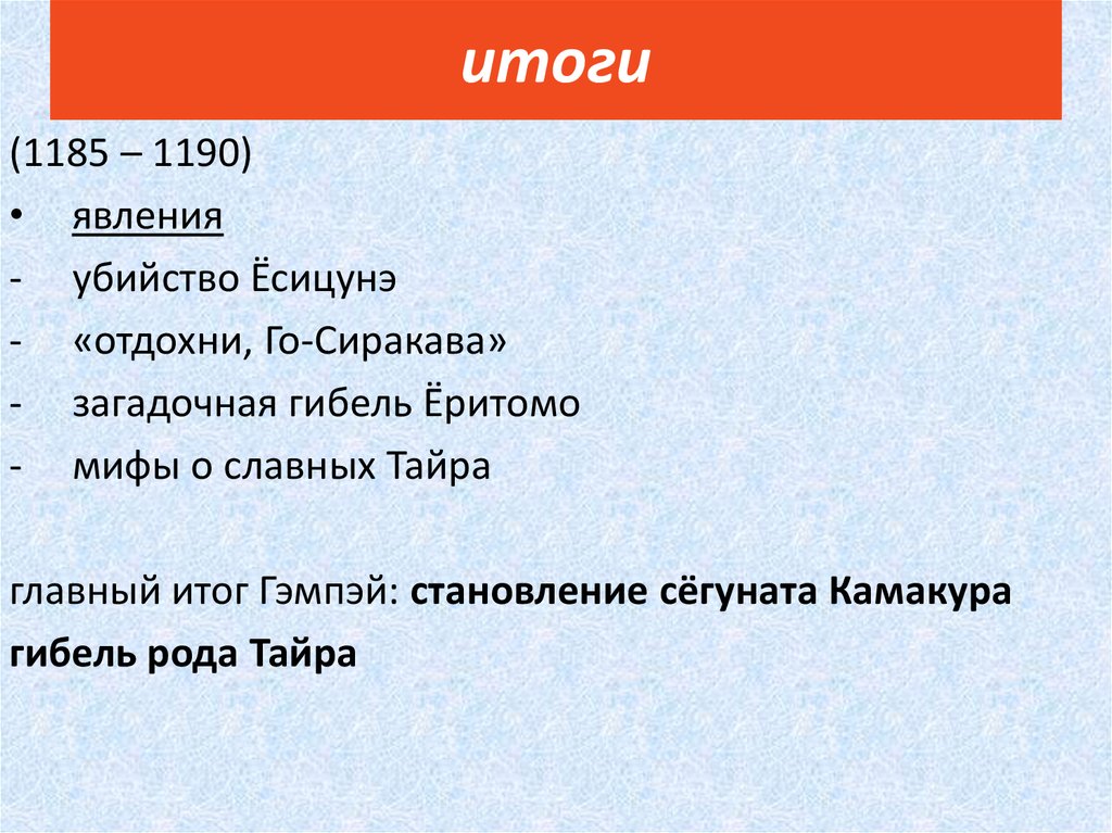 итоги(1185 – 1190)