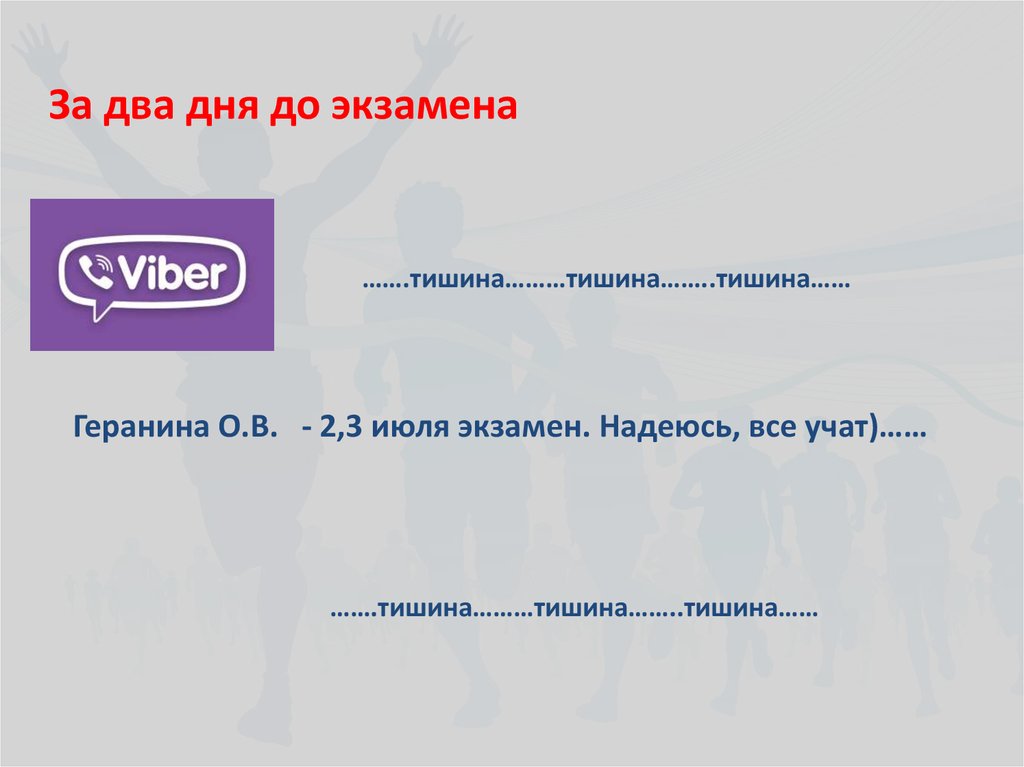 За два дня до экзамена…….тишина………тишина……..тишина……