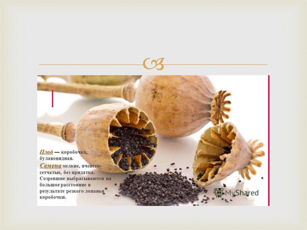 бесстебельной коробочкой с семенами (плод мака);
