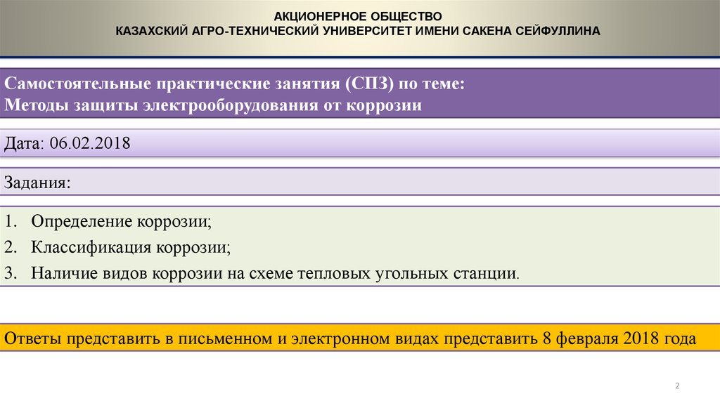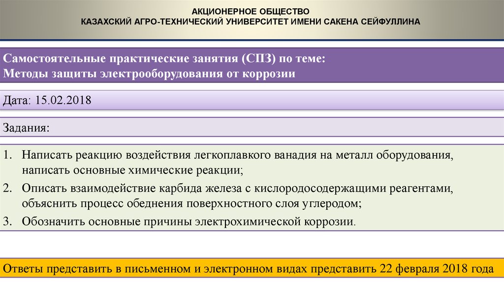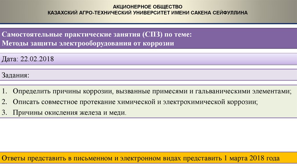 Ответы представить в письменном и электронном видах представить 15 марта 2018 года