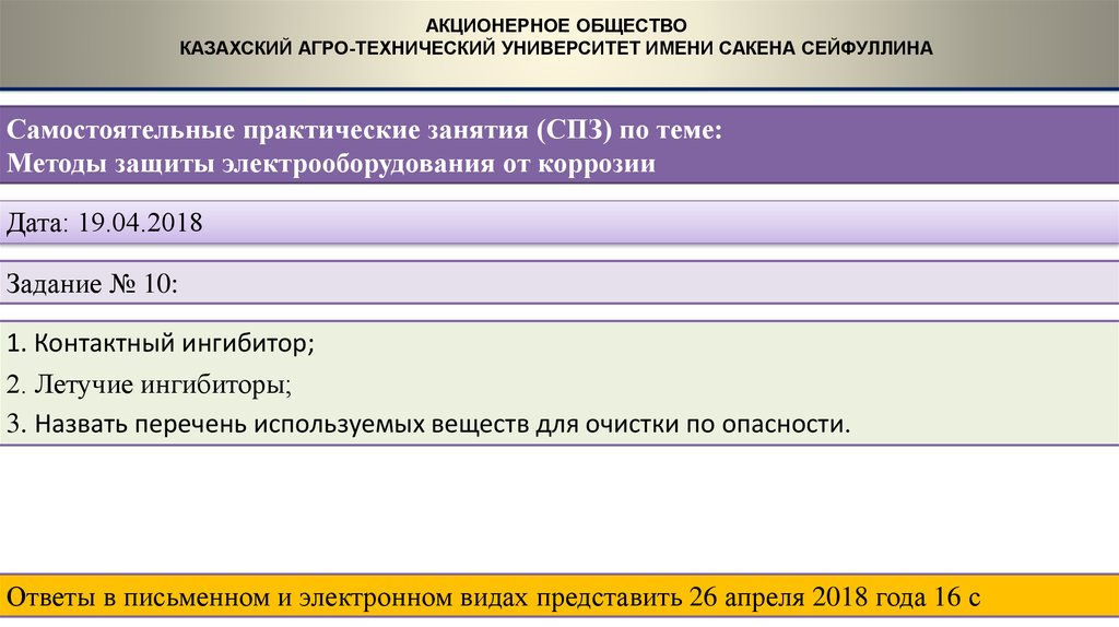 Ответы в письменном и электронном видах представить 26 апреля 2018 года 16 с