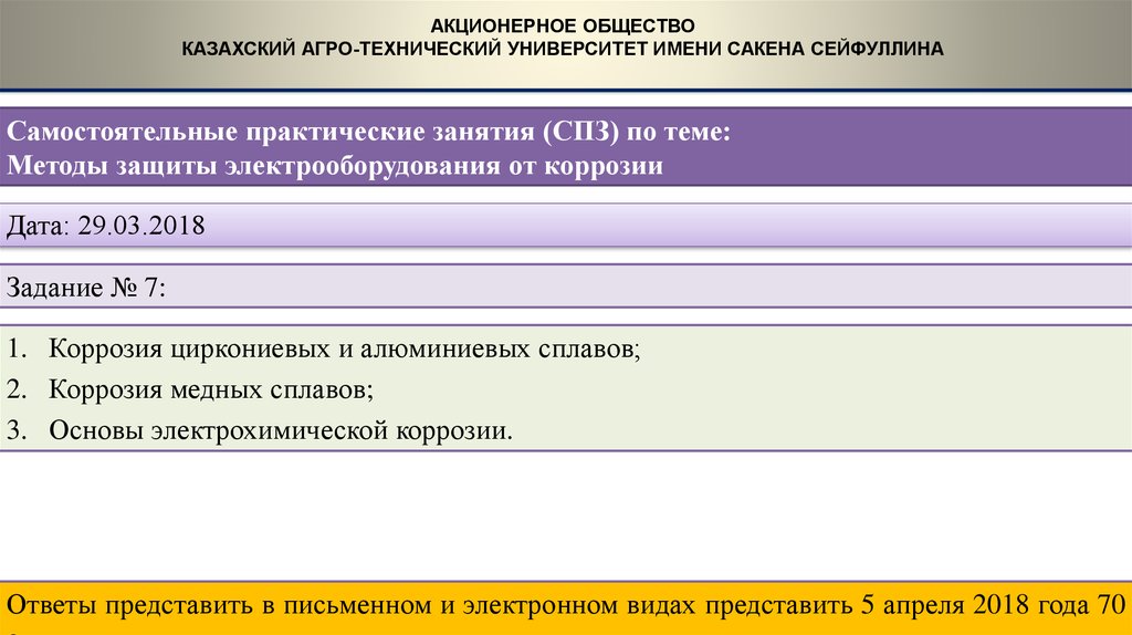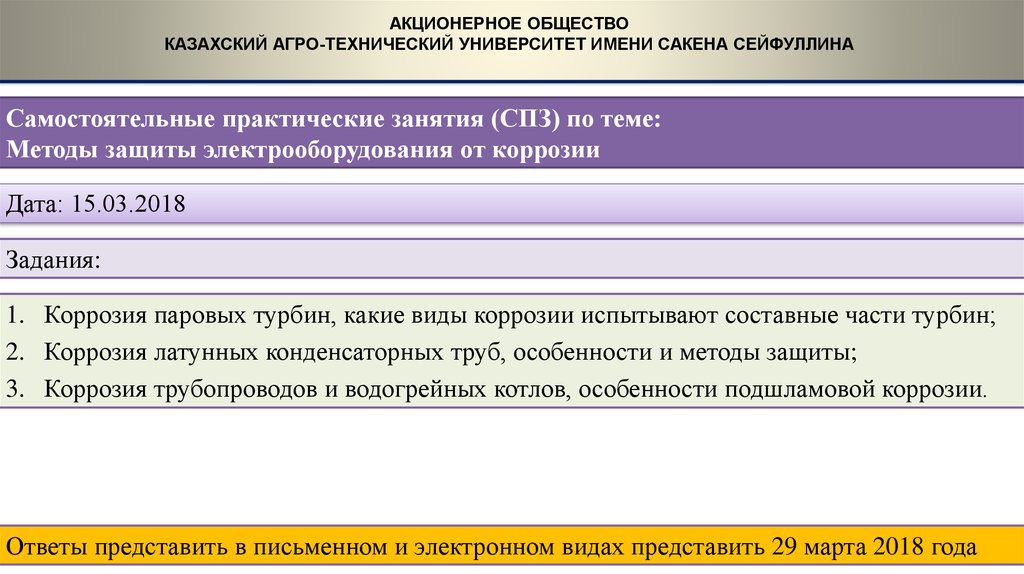 Ответы представить в письменном и электронном видах представить 29 марта 2018 года