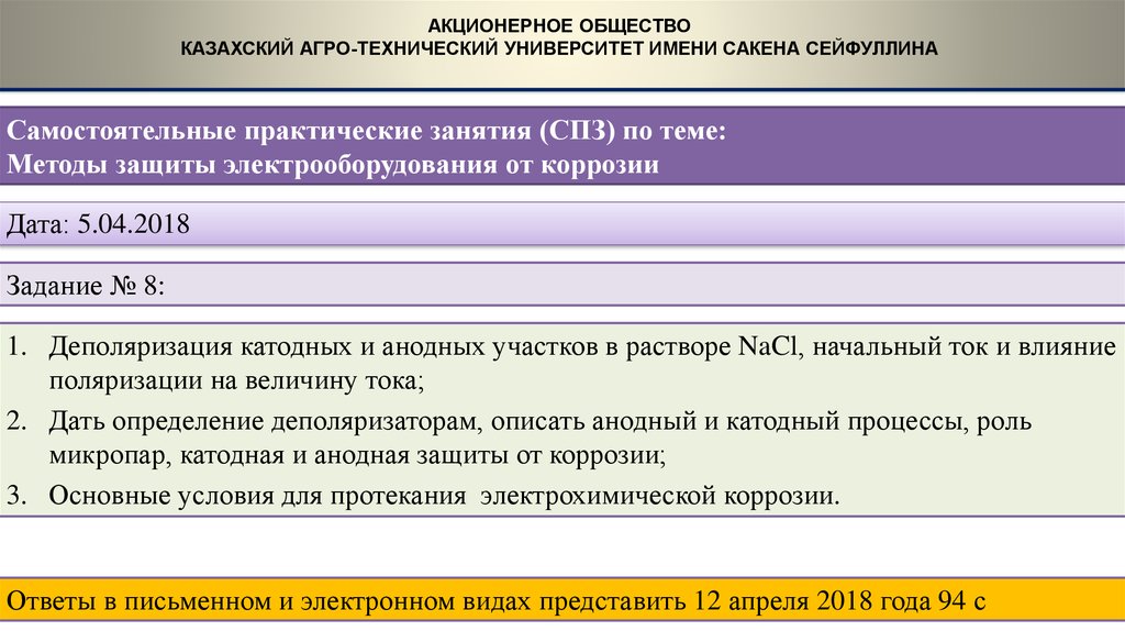 Ответы в письменном и электронном видах представить 12 апреля 2018 года 94 с