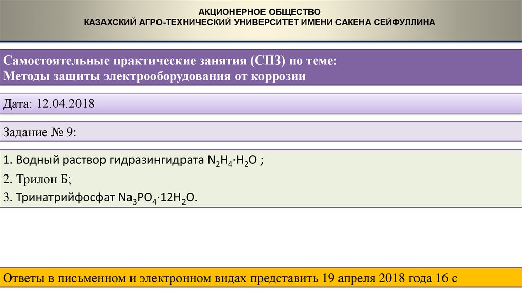 Ответы в письменном и электронном видах представить 19 апреля 2018 года 16 с