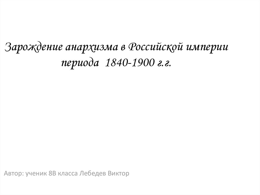 1. Зарождение анархизма в Российской империи периода 1840-1900 г.г.