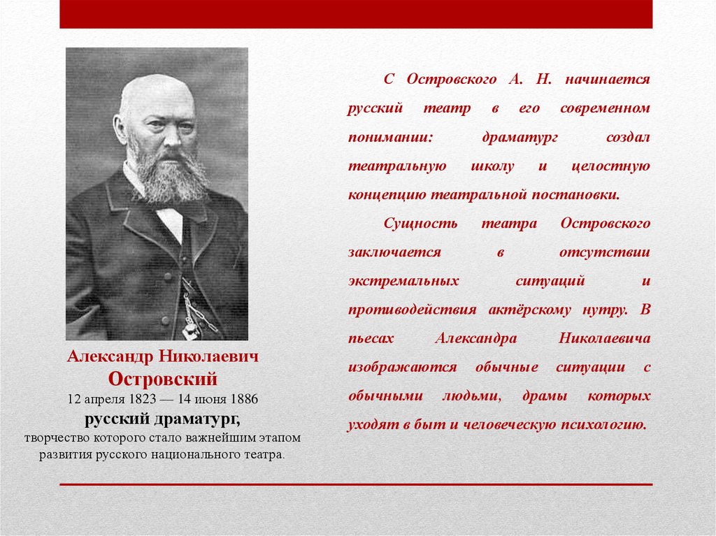 Алекса́ндр Никола́евич Островский 12 апреля 1823 - 14 июня 1886)