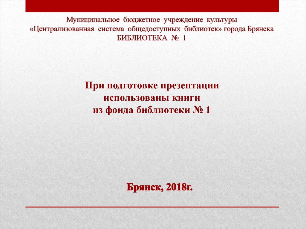 Муниципальное бюджетное учреждение культуры«Централизованная система общедоступных библиотек» города Брянска