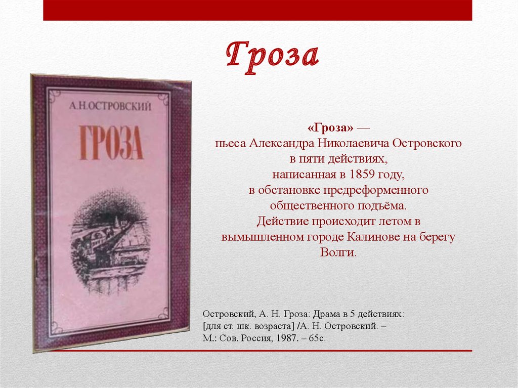 Островский, А. Н. Гроза: Драма в 5 действиях: