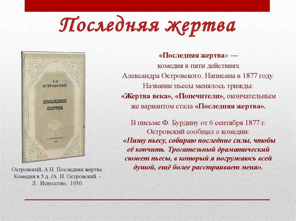 Островский, А.Н. Последняя жертва: