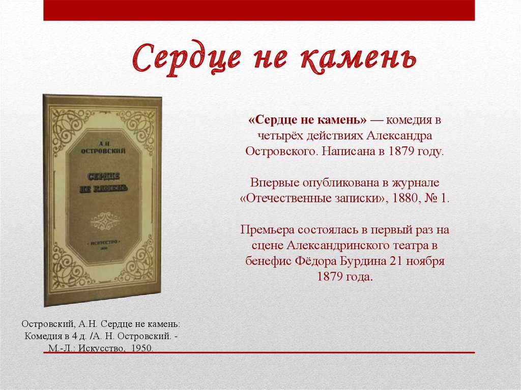 Островский, А.Н. Сердце не камень: