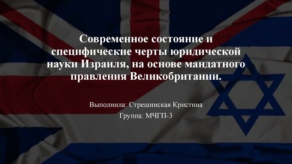1. Современное состояние и специфические черты юридической науки Израиля, на основе мандатного правления Великобритании.