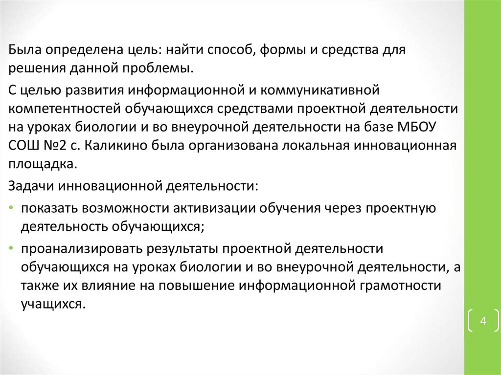 СОШ №2 с. Каликино была организована локальная инновационная