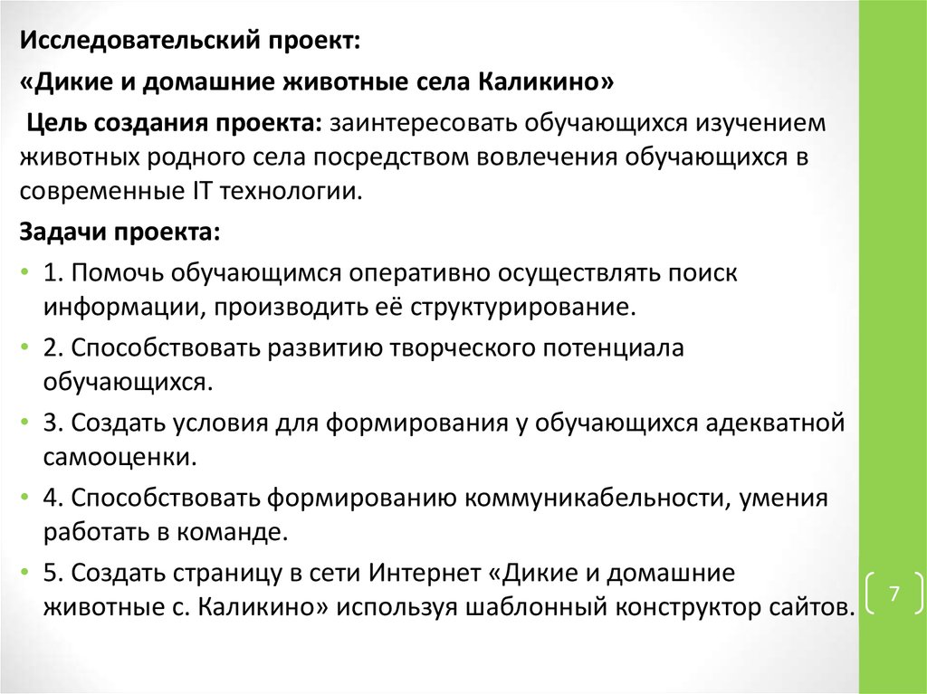 Исследовательский проект:«Дикие и домашние животные села Каликино»
