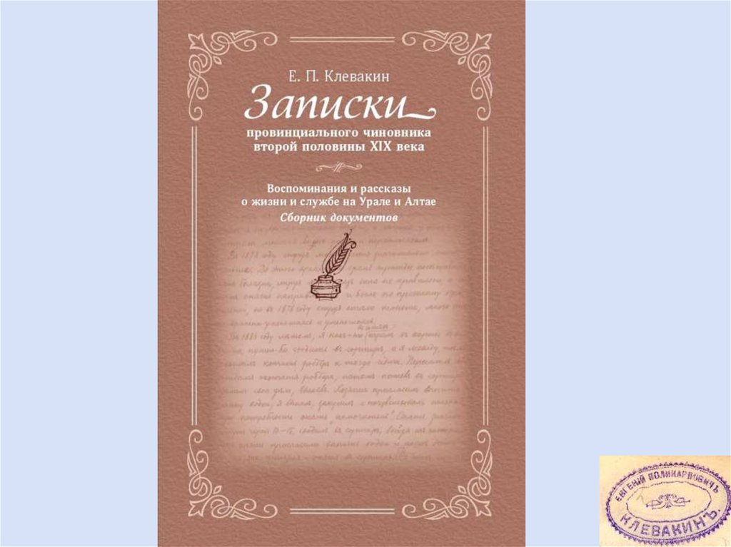 Клевакин Е.П. Записки провинциального чиновника второй половины XIX века. Книга-победитель Фестиваля книги. Алтай-2017