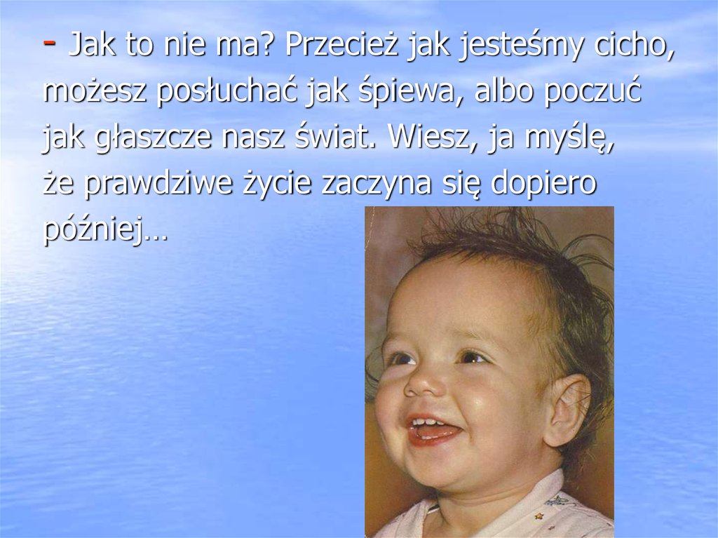 - Jak to nie ma? Przecież jak jesteśmy cicho,możesz posłuchać jak śpiewa, albo poczuć