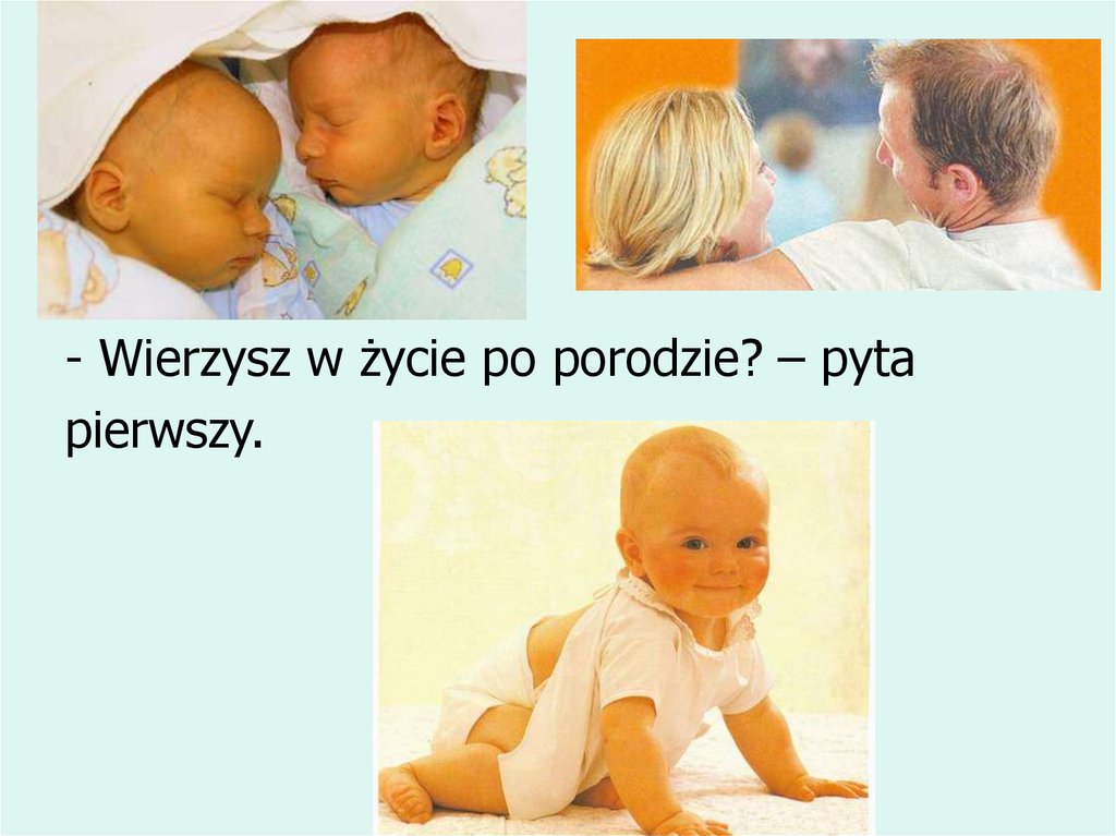 - Wierzysz w życie po porodzie? – pytapierwszy.