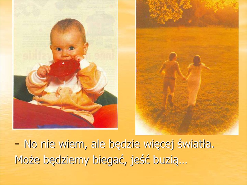 - No nie wiem, ale będzie więcej światła.Może będziemy biegać, jeść buzią…