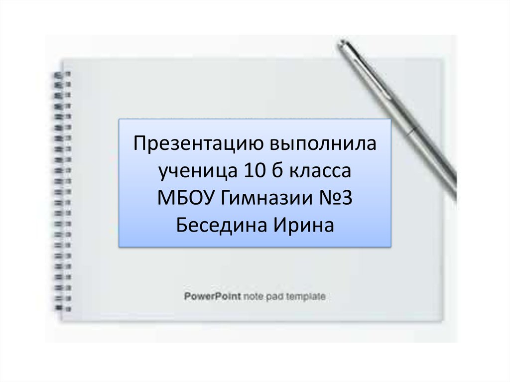 1. Презентацию выполнила ученица 10 б класса МБОУ Гимназии №3 Беседина Ирина