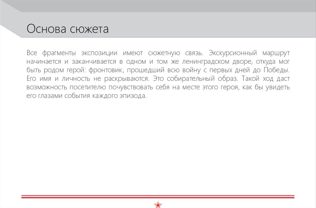 Основа сюжетаВсе фрагменты экспозиции имеют сюжетную связь. Экскурсионный маршрут