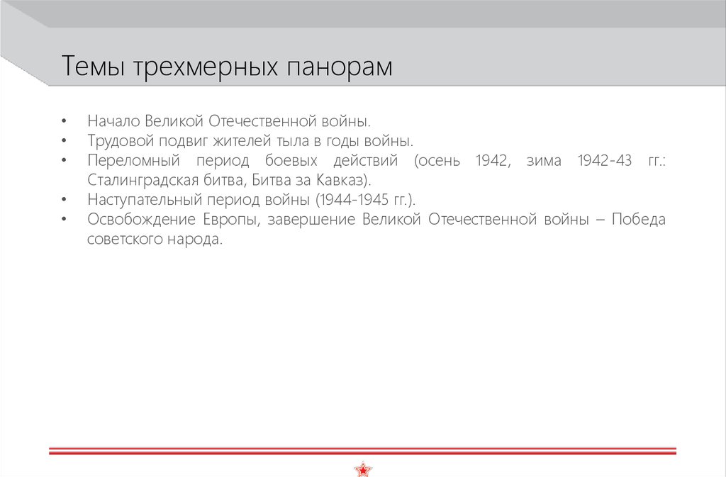 Темы трехмерных панорамНачало Великой Отечественной войны.