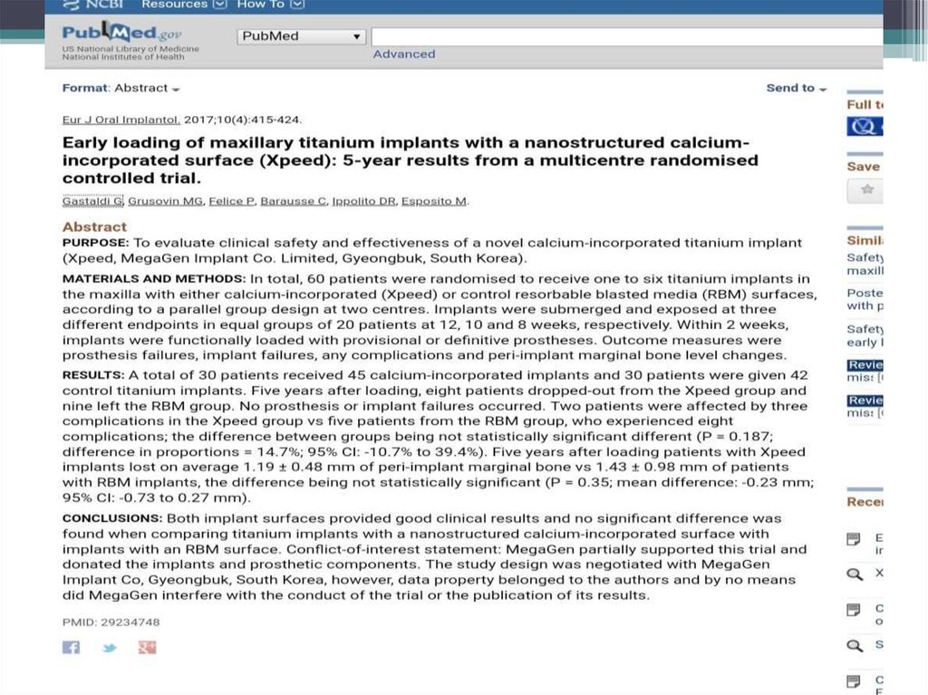 поверхностью имплантата с участием кальция у людей(Xpeed,MegaGen Implant Co.).