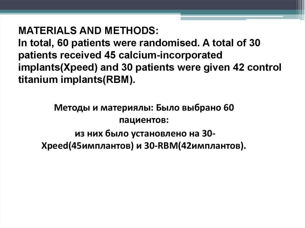 из них было установлено на 30Xpeed(45имплантов) и 30-RBM(42имплантов).