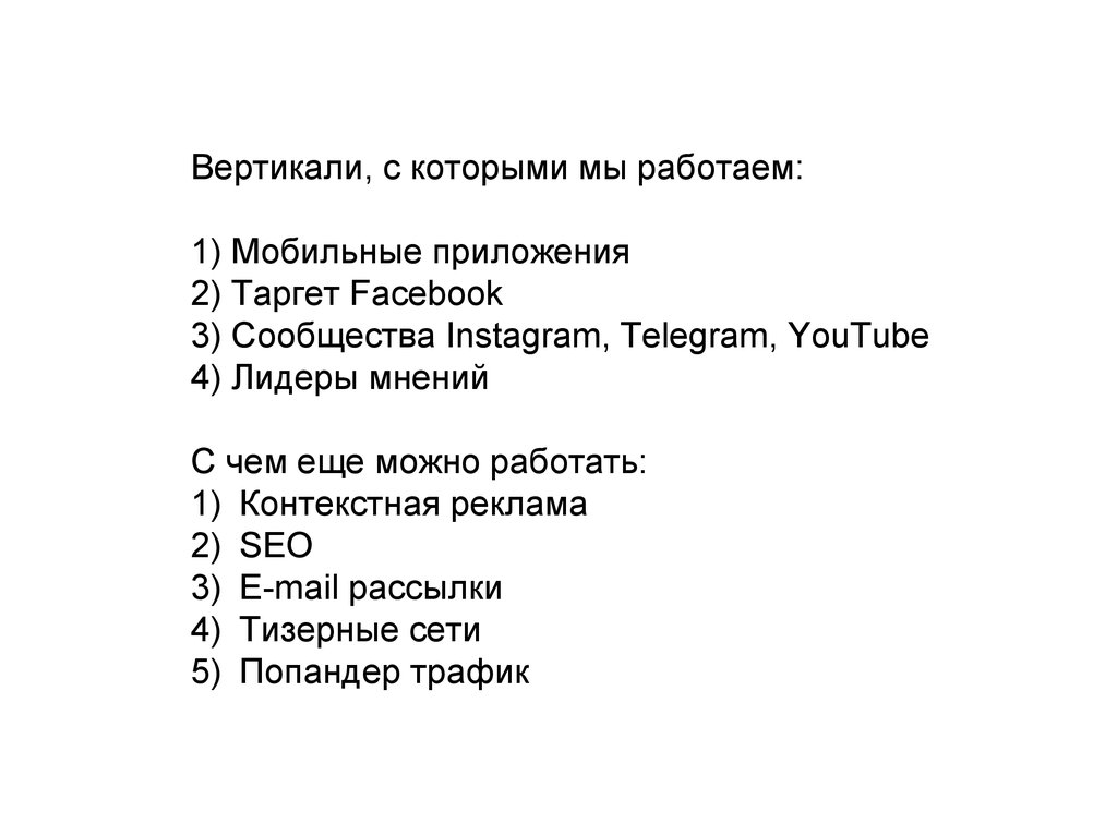 Вертикали, с которыми мы работаем:1) Мобильные приложения
