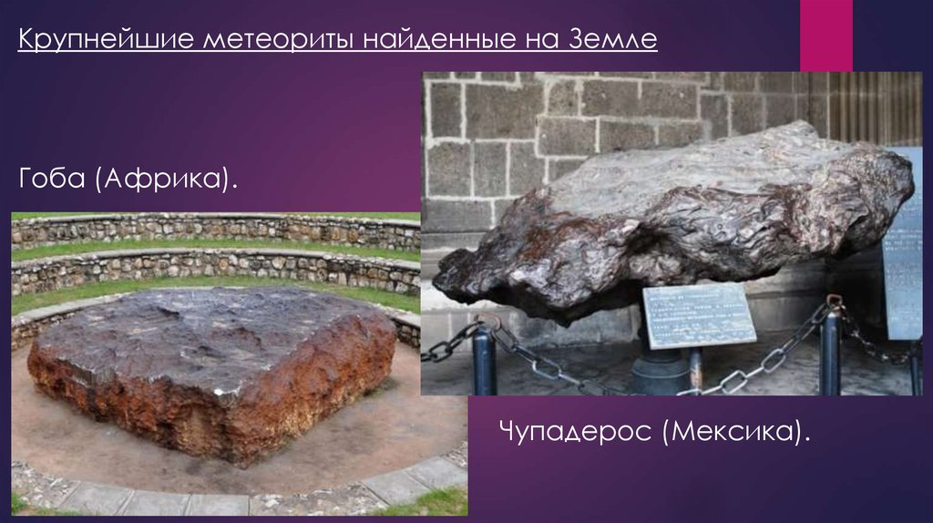 Крупнейшие метеориты найденные на ЗемлеГоба (Африка).