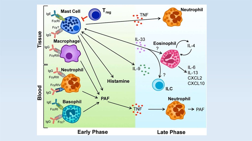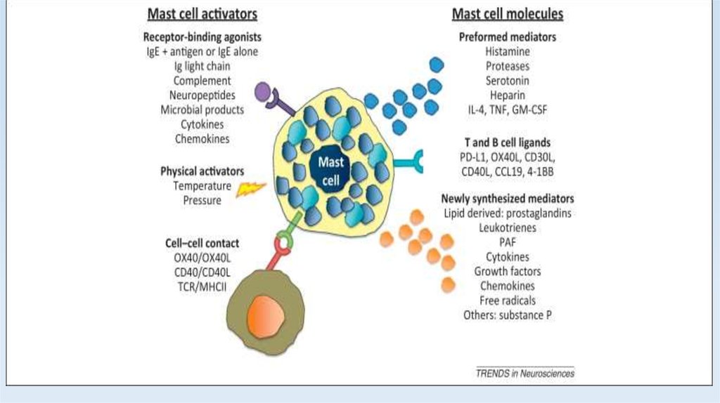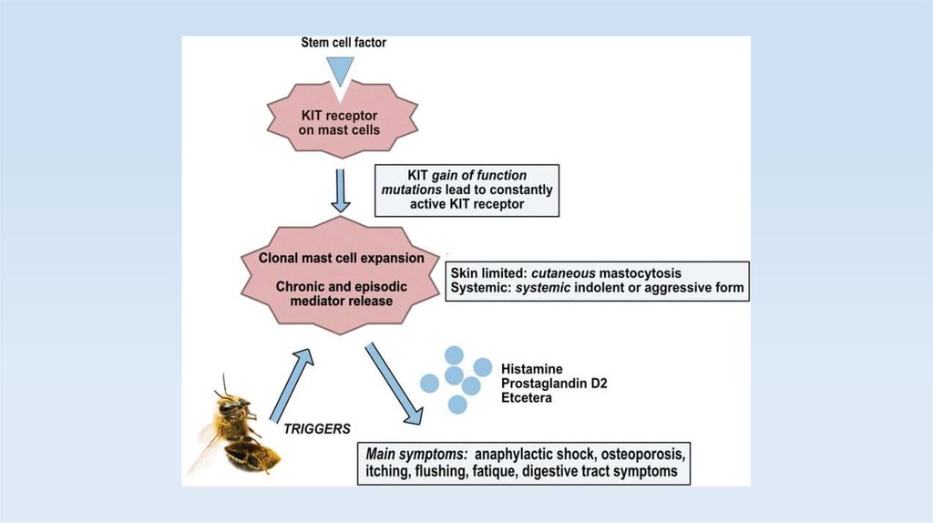 • Патогенез заболевания основан на высвобождении различных медиаторов тучных
