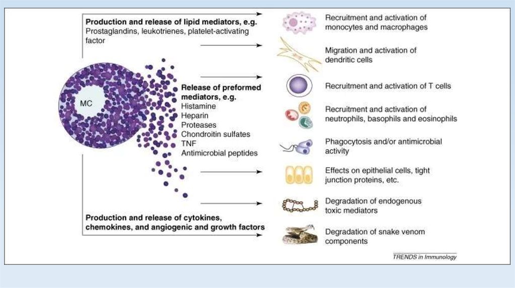 клеток, включая гепарин, гистамин, лейкотриены и цитокины воспаления. Обширная