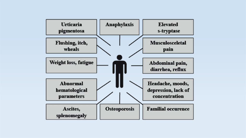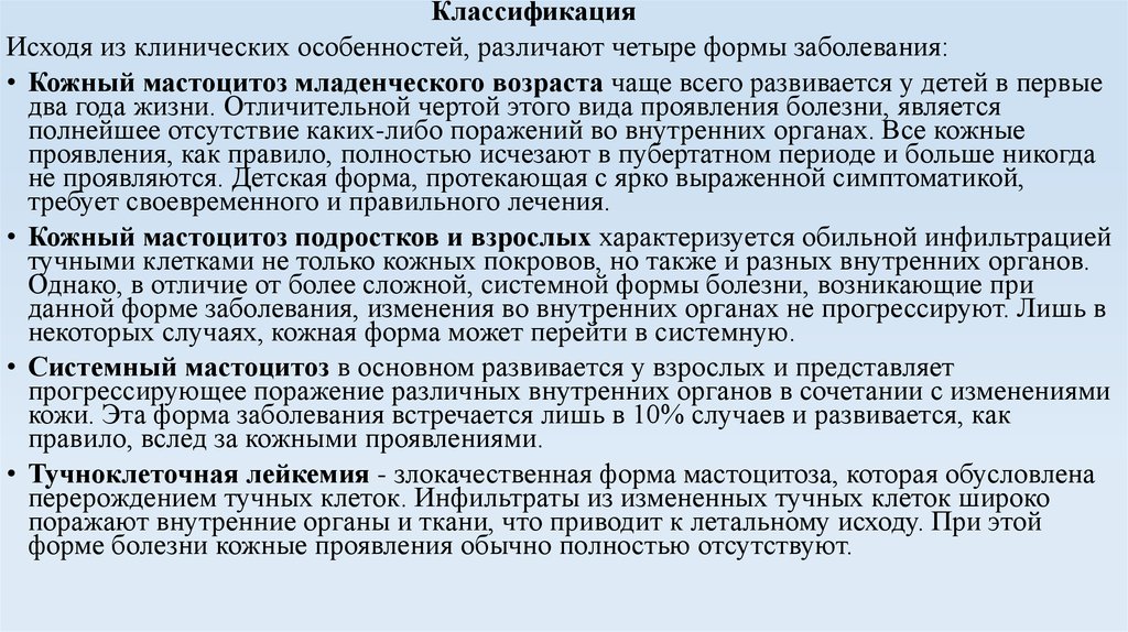 • Системный мастоцитоз в основном развивается у взрослых и представляет