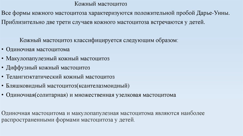 Кожный мастоцитозКлинические формы кожного мастоцитоза у детей:
