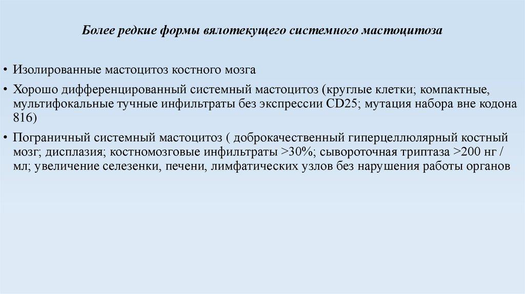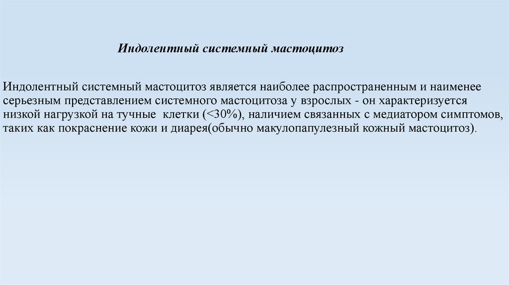 • Вялотекущий (индолентный) системный мастоцитоз
