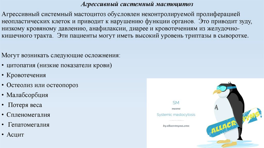 • Агрессивный системный мастоцитоз