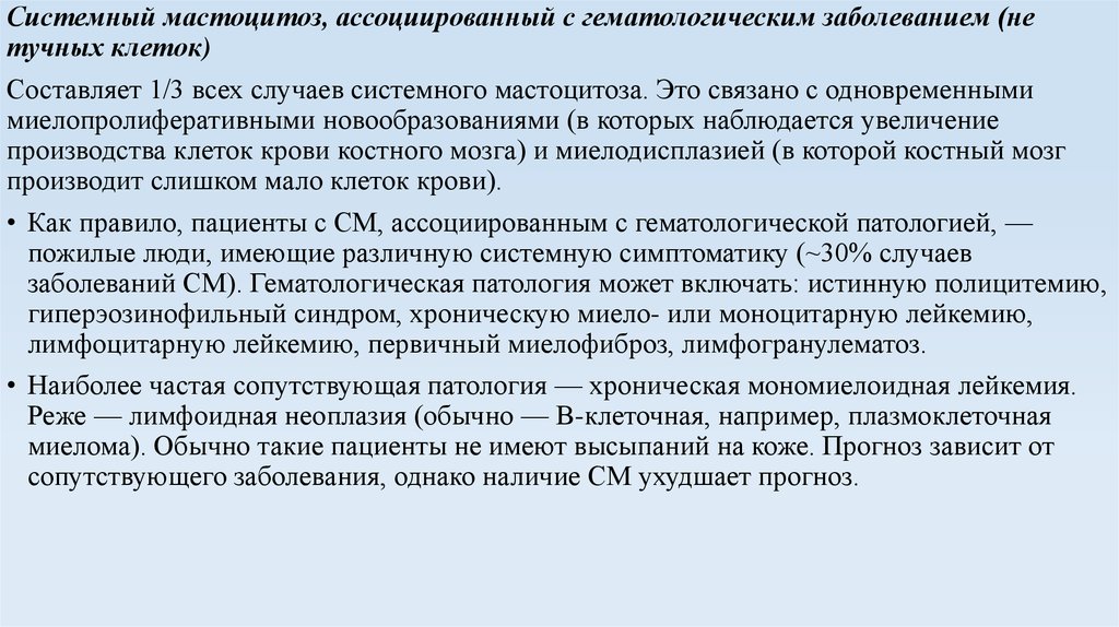 • Системный мастоцитоз, ассоциированный с гематологическим заболеванием (не тучных клеток):