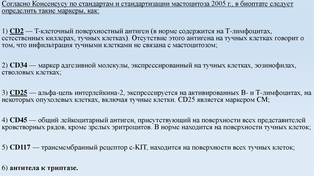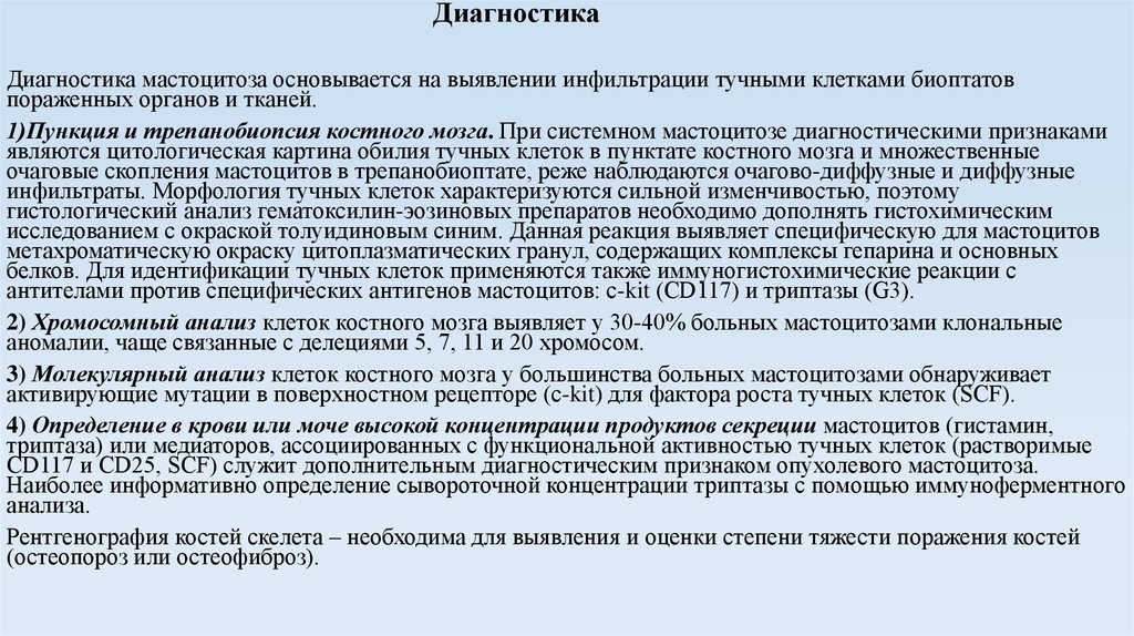 CD117 и CD25, SCF) служит дополнительным диагностическим признаком опухолевого мастоцитоза.