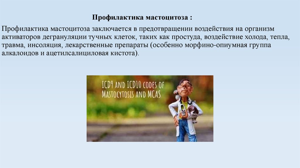 Профилактика мастоцитоза :Профилактика мастоцитоза заключается в предотвращении воздействия на организм