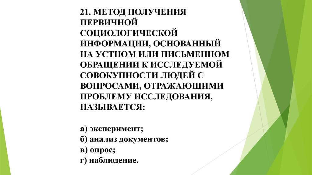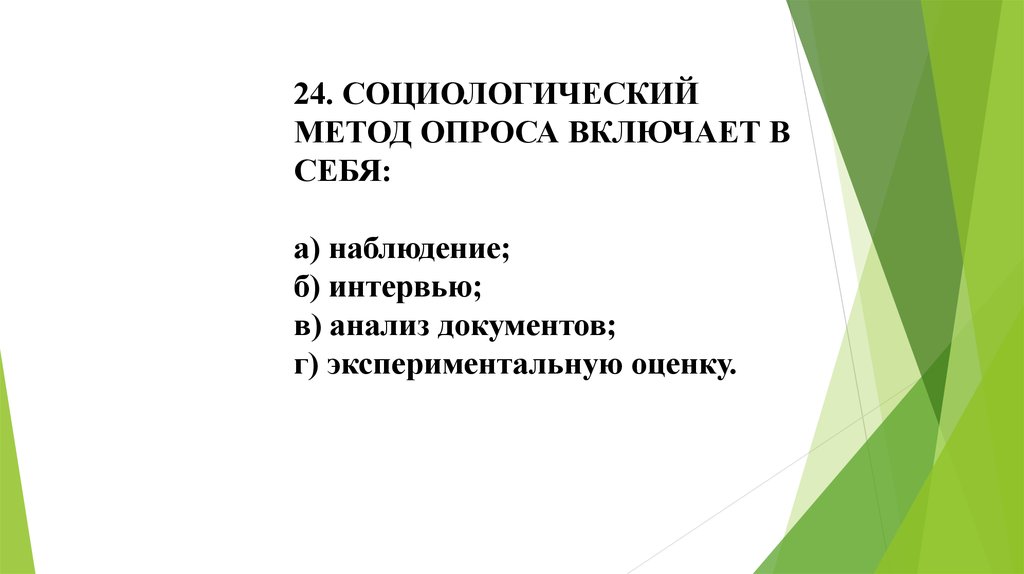 24. СОЦИОЛОГИЧЕСКИЙМЕТОД ОПРОСА ВКЛЮЧАЕТ В