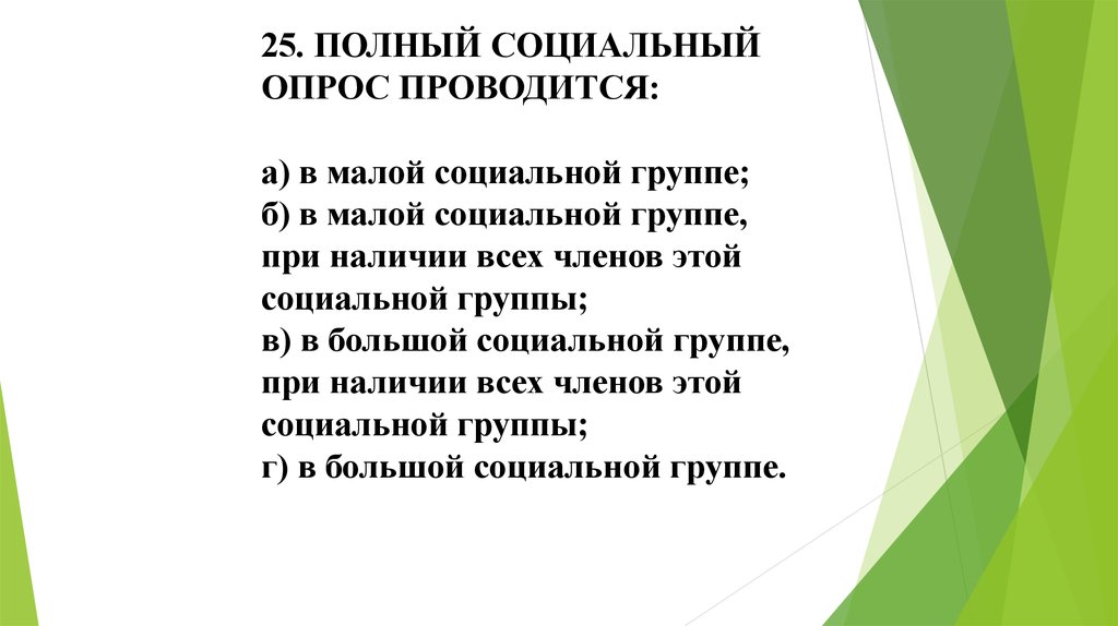 25. ПОЛНЫЙ СОЦИАЛЬНЫЙОПРОС ПРОВОДИТСЯ: