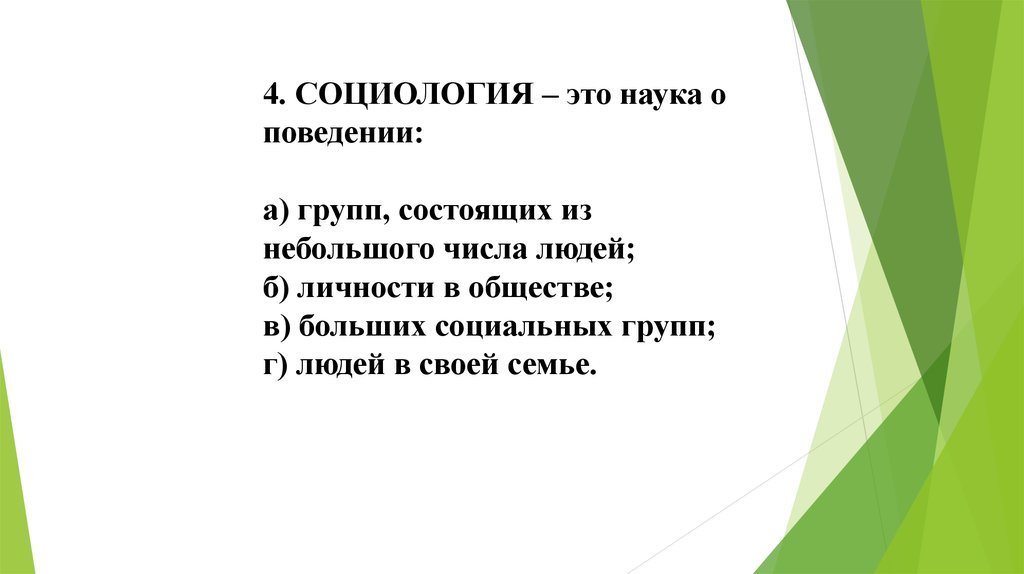 4. СОЦИОЛОГИЯ – это наука оповедении: