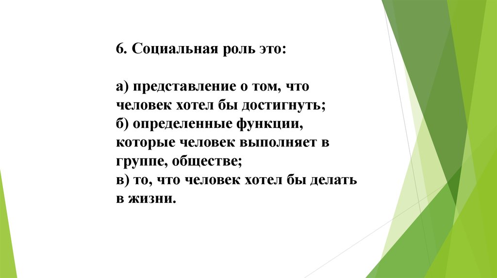 6. Социальная роль это:а) представление о том, что