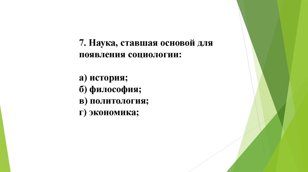 7. Наука, ставшая основой дляпоявления социологии: