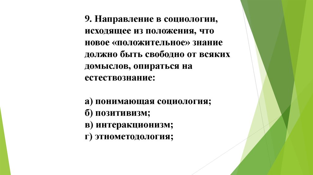 9. Направление в социологии,исходящее из положения, что