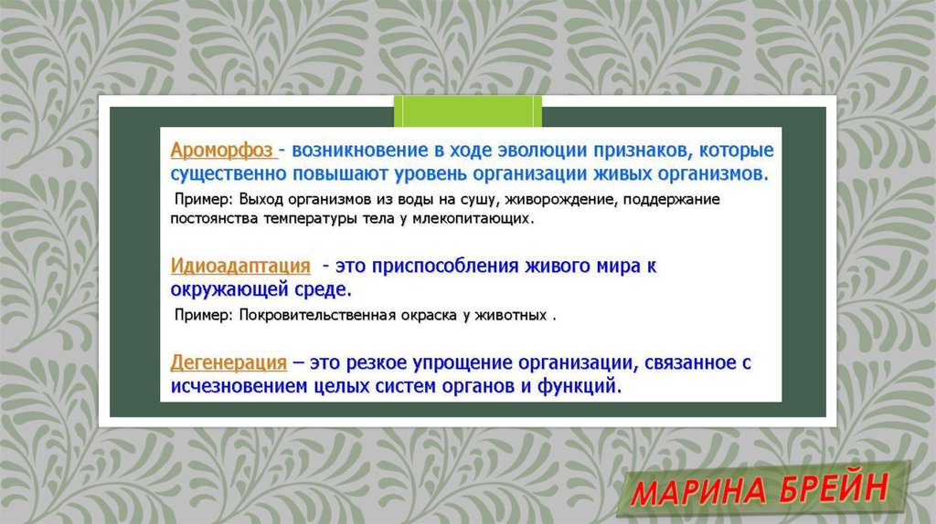 ВПИСАТЬ ПРОПУЩЕННЫЙ ТЕРМИНПути эволюции: