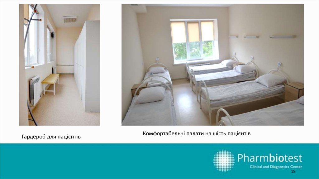 Гардероб для пацієнтівКомфортабельні палати на шiсть пацієнтів