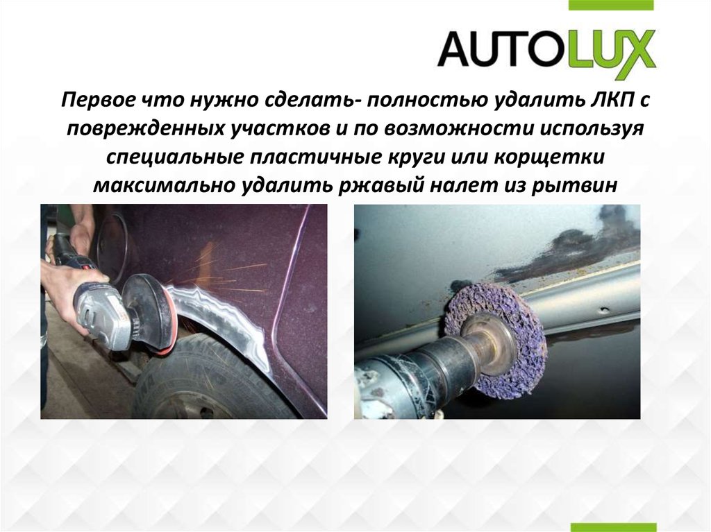 Первое что нужно сделать- полностью удалить ЛКП споврежденных участков и по возможности используя
