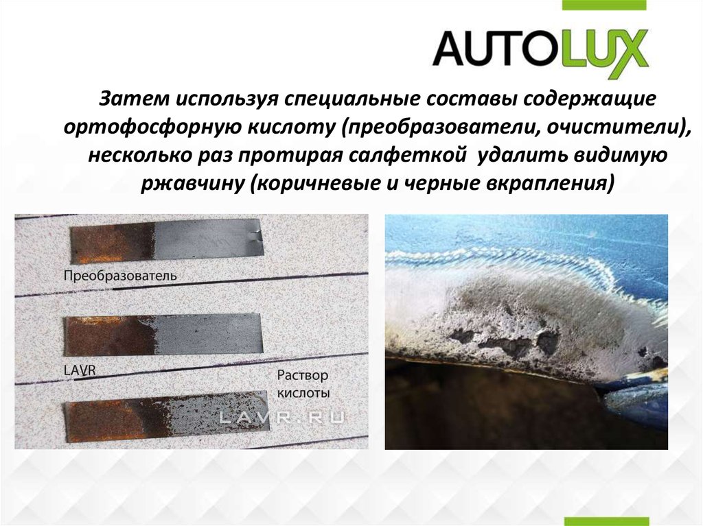 Затем используя специальные составы содержащиеортофосфорную кислоту (преобразователи, очистители),