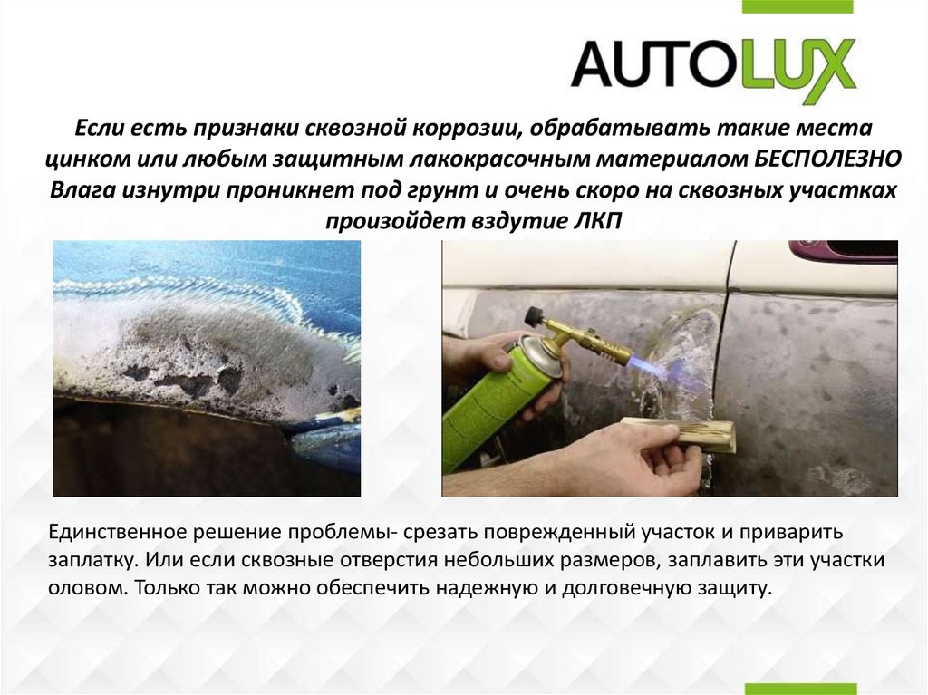 Если есть признаки сквозной коррозии, обрабатывать такие местацинком или любым защитным лакокрасочным материалом БЕСПОЛЕЗНО